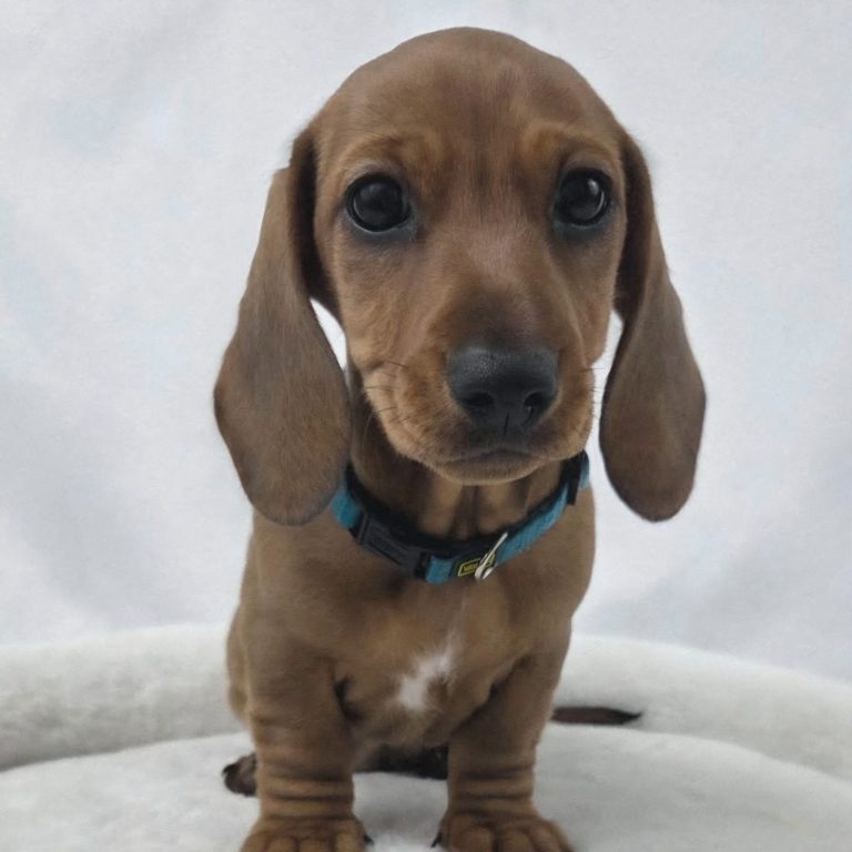 Lumi ist ein Kurzhaar Zwergdackel in der Farbe Red und unsere Nachzucht (Tochter von Marla).