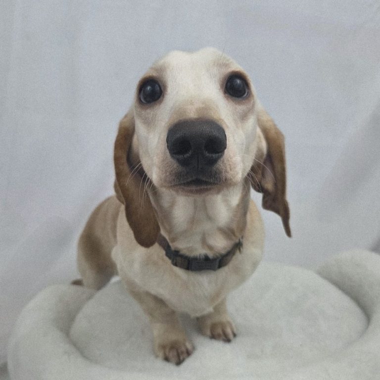 Kowalski ist ein Kurzhaar Zwergdackel in der Farbe Cream.